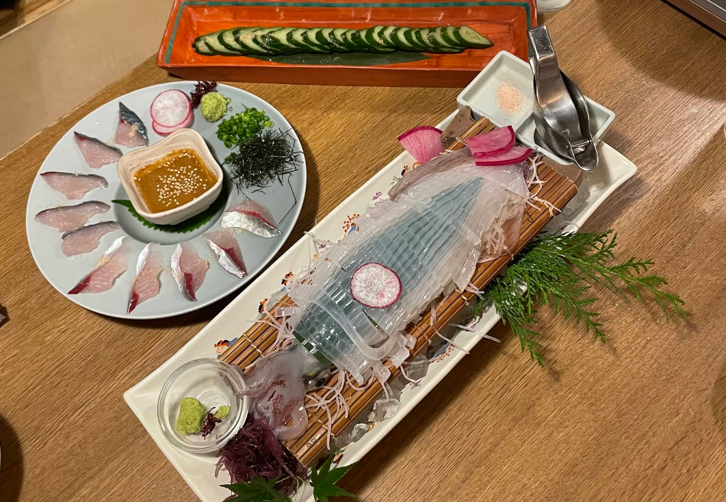 야키토리 외에도 나가라쿠는 당일 공수한 신선한 제철 해산물 요리를 빼놓을 수 없는데, 특히 사시미 메뉴의 퀄리티가 매우 높습니다.